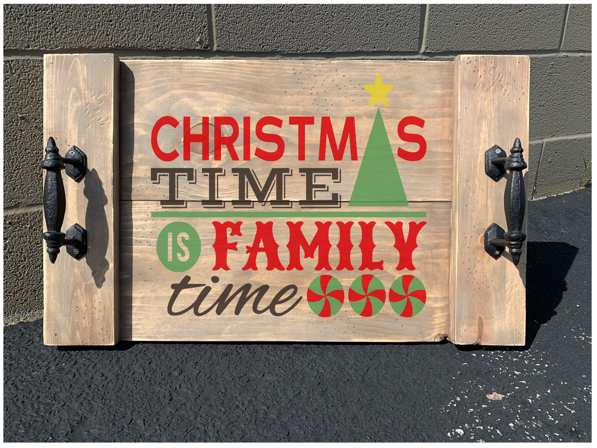 Kit includes everything you need to make a Christmas Tray. Basic handles are included, but there are upgrades available.
